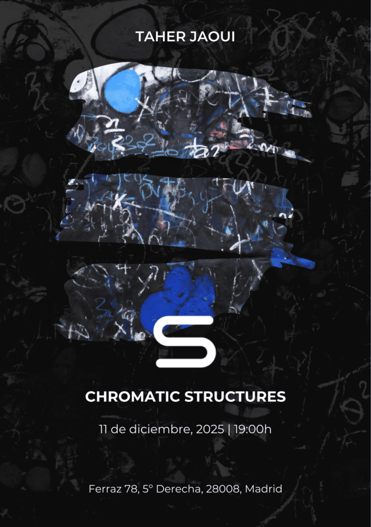 Chromatic Structures se inaugura el 11 de diciembre de 2025 en S Gallery, Madrid. Taher Jaoui será uno de los dos artistas protagonistas, en diálogo con Rubén Sánchez. Las plazas para la inauguración son limitadas. Puedes reservar la tuya aquí para poder vivir esta experiencia cromática de cerca.