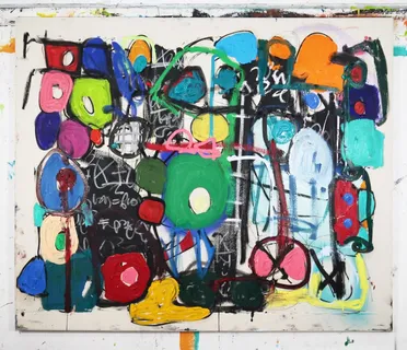 Taher Jaoui is an artist who stands out for his ability to organize certain forms or patterns in an apparently random manner, materializing it in a controlled representation of chaos. The act of painting and the plastic qualities of the materials used come together to capture a rich and intense creative process. The artist fuses abstract expressionism, primitive African art, graffiti, and pop culture to create a unique visual language that challenges academic conventions. Influenced by Jean-Michel Basquiat, Jean Dubuffet, and the aesthetics of neo-expressionism, his works oscillate between chaos and order, integrating gestural strokes, layers of vibrant color, and mathematical symbols. In his series, from the monochromatic "Black and White," which evokes mathematical schemes, to the neo-figurative "Caartoons," where cartoony shapes and saturated colors construct visual narratives, Jaoui connects emotions and reflection in a language that combines the logic of calculation with creative spontaneity.