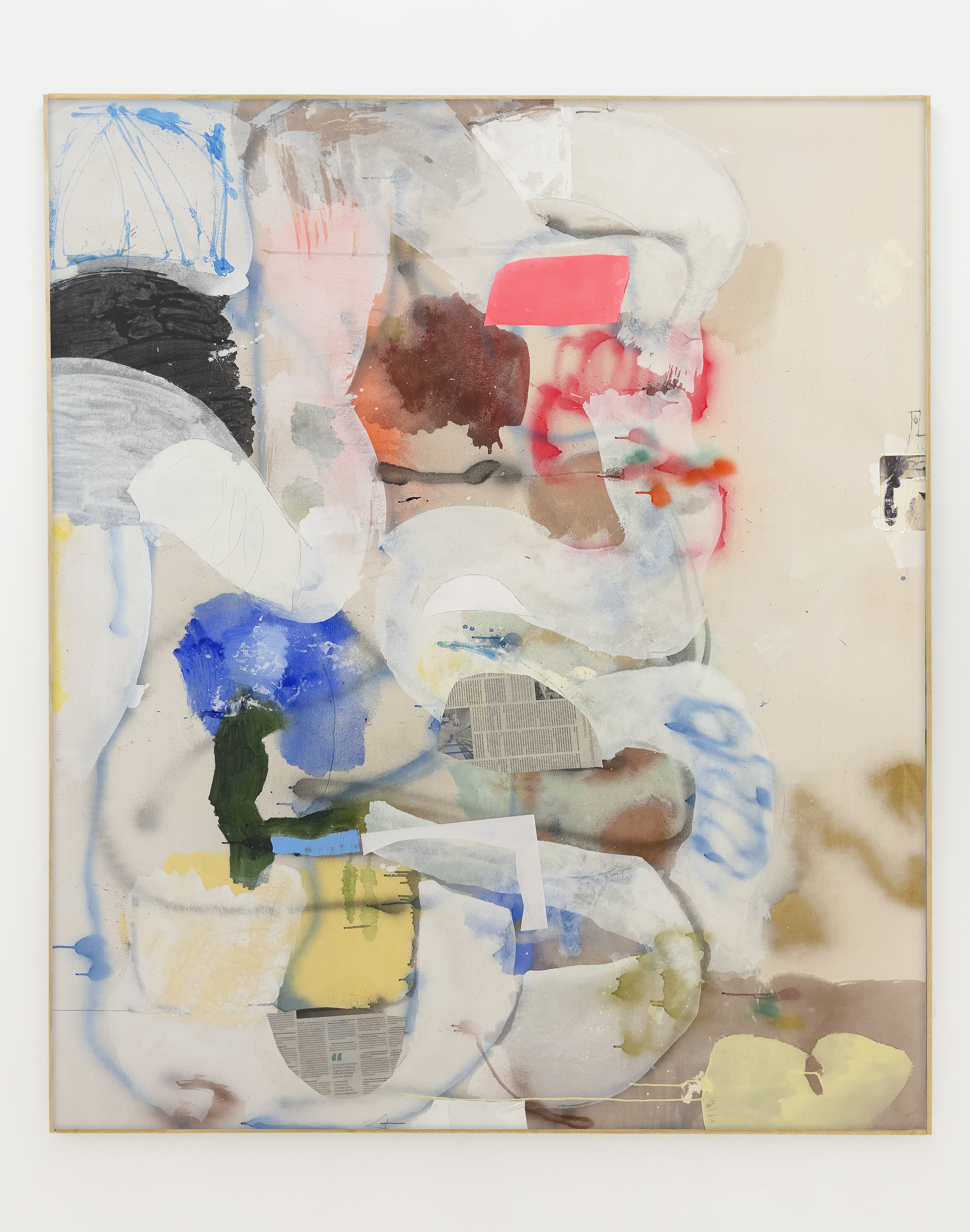 "Colla" es una serie que inicié en 2017, paralelamente a "Street Play", pero con un enfoque más profundo en el soporte pictórico y la técnica mixta. Aunque evoluciona bajo la influencia del dibujo infantil, el cómic y el arte espontáneo, existe una gran intencionalidad en la búsqueda de imágenes latentes que emergen a través de un proceso repetido de dibujo y borrado hasta la desfiguración. A partir de cierto punto, las capas de pintura comienzan a redistribuirse, ordenando el caos inicial. Mientras que al principio los gestos son más automáticos y espasmódicos, a medida que la pintura se acerca a su conclusión, todo se vuelve más premeditado y estudiado. El resultado son imágenes que oscilan entre la figuración y la abstracción, dejando espacio para la libre interpretación del espectador. Dentro de esta serie se enmarcan dos subseries: "Cornelius" y "Circuitos".