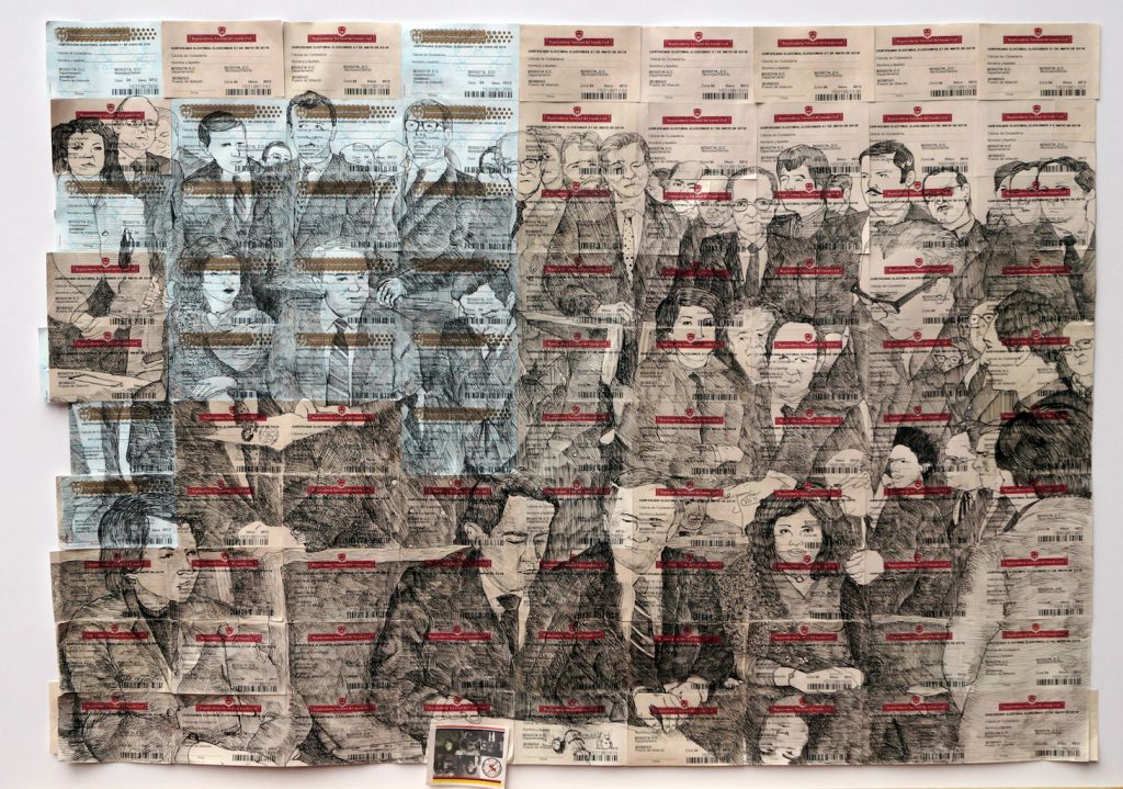 El paralelismo entre el contexto histórico de Colombia y el contexto actual del país es el tema fundamental sobre el que gira la obra de la artista colombiana Francy Jiménez. Gran parte de su método de creación lo realiza a través de la apropiación de archivos a partir de los cuales crea nuevas imágenes o nuevos archivos “ficticios” desde los que aborda el conflicto armado colombiano, el territorio o la historia. A pesar de su juventud, o debido precisamente a eso, las fotografías, objetos, vídeos o intervenciones de Francy Jiménez componen unos de los trabajos más interesantes del panorama artístico colombiano.