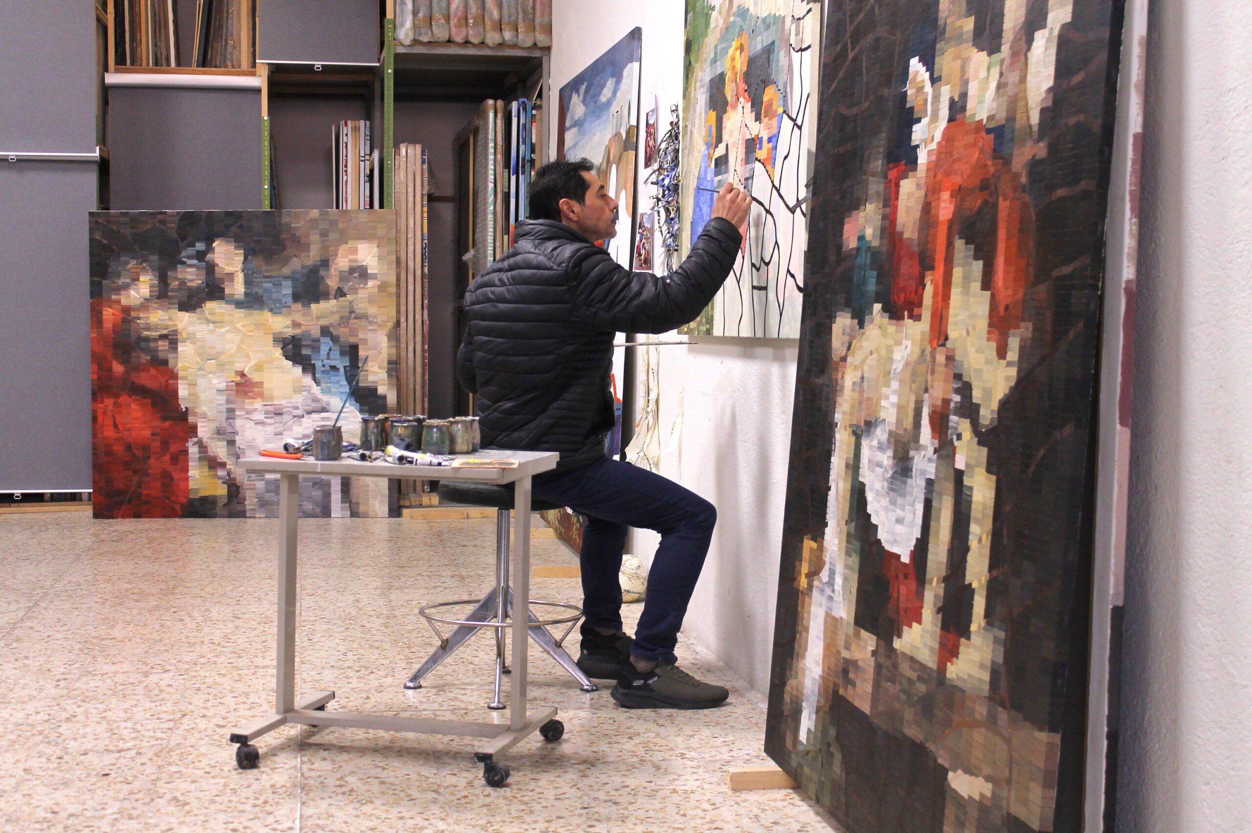 Esa forma de entender la pintura no aparece de manera inmediata. Hay un momento, sin embargo, que marca un antes y un después. Cuando, con 17 o 18 años, entra en un estudio y deja atrás el espacio doméstico, la práctica cambia de naturaleza. Ya no se trata solo de pintar, sino de convivir con una forma de vida. El estudio no es únicamente un lugar físico: es un ecosistema donde la pintura se piensa, se discute y se comparte.
