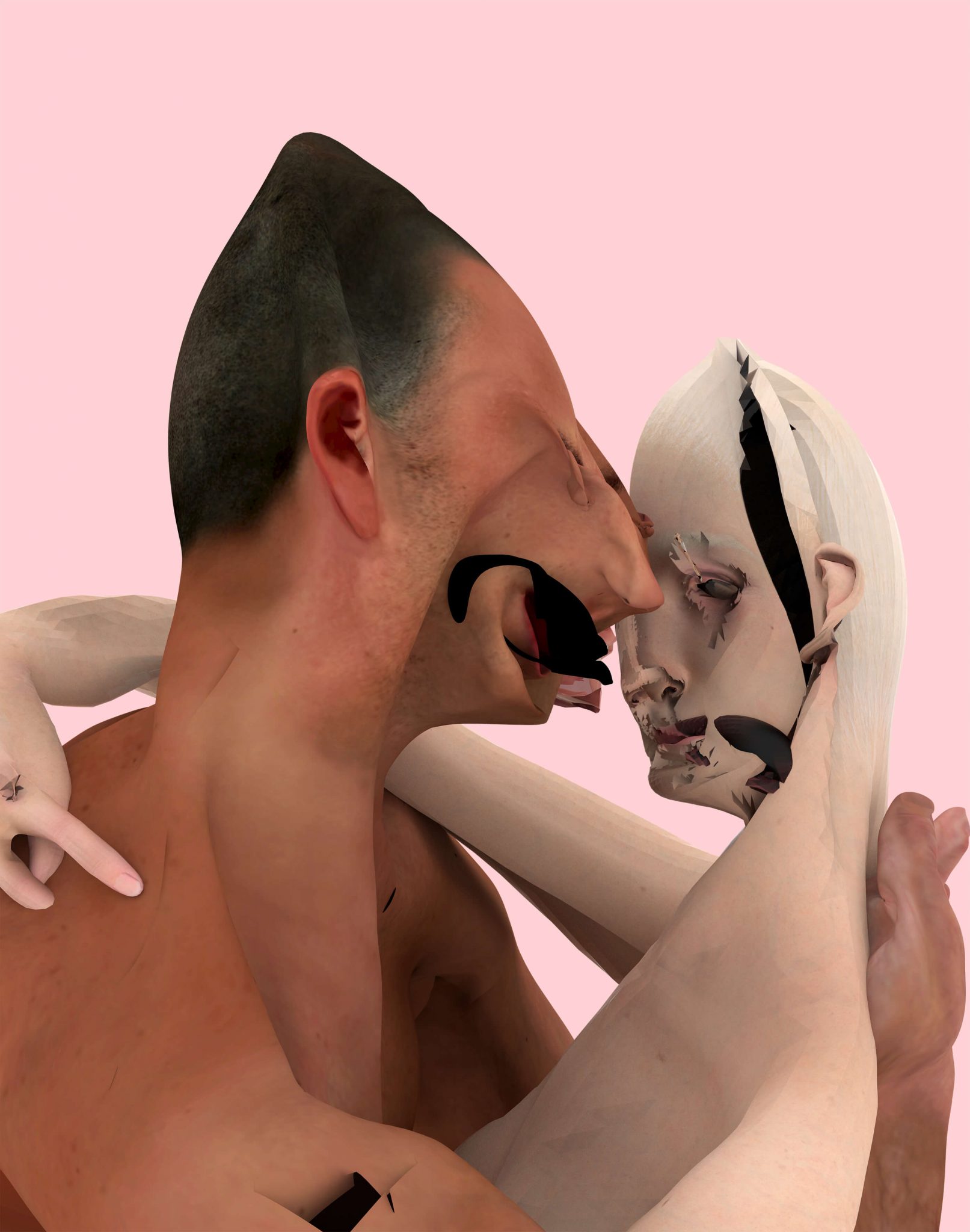 En un mundo dominado por la tecnología, las redes sociales, internet y el consumo masivo de la imagen, es pertinente plantearse si solo lo que es creado de manera analógica puede considerarse pintura o si, de lo contrario, aquello que pudiera crearse por medio de un algoritmo y la tecnología también pudiera serlo. Inés Maestre (Madrid, 1992) trabaja desde un proceso creativo muy particular en el que parte de imágenes personales o de archivo y que combina para crear nuevas imágenes que interviene a través de herramientas digitales como pinceles de Photoshop y con pintura al óleo. Proceso sin pautas establecidas y que Maestre sigue explorando. Por su lado, Jesu Moratiel (A Coruña, 1993) presenta @nicemask, un proyecto surgido de Instagram. Moratiel aborda a través de imágenes 3D, – cargadas de surrealismo, humor negro y la ironía del meme – nuevas problemáticas contemporáneas como pueden ser la transitoriedad e no permanencia del contenido frente al consumo masivo de imágenes, la adicción a las nuevas tecnologías, la pérdida de la intimidad o el exacerbado culto al cuerpo y del ego que desemboca en un vacío existencial muy humano.