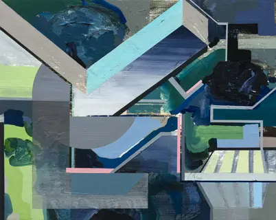 El artista mexicano Hugo Robledo investiga en su obra las fronteras entre figuración y abstracción y sus composiciones pictóricas provienen a menudo de viejas enciclopedias ilustradas y de Internet, de donde extrae imágenes referentes a plantas arquitectónicas, esquemas técnicos, medios de transporte y tecnologías en desuso. El derrumbe del futuro es un proyecto en el que ha trabajado a lo largo de varios años y en el que combina un lenguaje abstracto y geométrico con la reflexión sobre las ideas de arquitectura, espacio, progreso y nostalgia, que ponen de manifiesto las tensiones contradictorias de la época en que vivimos.