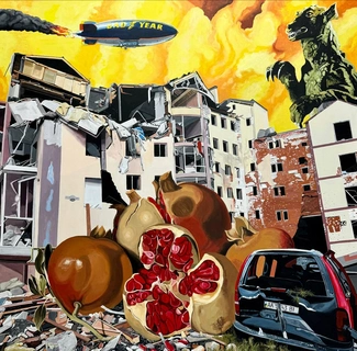 Óscar Seco desarrolla una práctica pictórica crítica que subvierte los relatos históricos, políticos y sociales mediante una iconografía híbrida que combina tradición bélica, estética del cómic e imaginario apocalíptico. Sus composiciones, densas y narrativas, integran referencias históricas y escenarios distópicos con una estructura visual fragmentada y cargada de simbolismo. Formalmente, conjuga dibujo riguroso con elementos paródicos y grotescos, generando una tensión entre artificio y contenido. Su manejo cromático alterna entre paletas saturadas y blancos y negros, siempre en función del discurso visual. Conceptualmente, su obra opera desde el revisionismo simbólico, cuestionando las mitologías del poder, la memoria colectiva y la violencia estructural mediante ironía, apropiación y anacronismo.