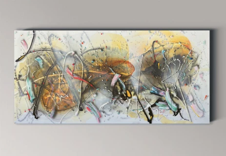 Paulina Cerda es una artista visual chilena cuyo trabajo se sitúa entre la abstracción, la materialidad y la ilusión del espacio tridimensional. Su práctica parte del gesto y la mancha como punto de origen, utilizando la pintura para construir superficies que trascienden el plano y funcionan como espacios perceptivos activos. Uno de los aspectos clave de su obra es el uso de múltiples capas de acrílico para generar profundidad, luz y sombras que sugieren volumen y presencia física sin abandonar la bidimensionalidad. A lo largo de su trayectoria, el gesto pictórico ha evolucionado desde formas suspendidas y compactas hacia fragmentaciones más frágiles, que exploran la memoria del movimiento y la persistencia de lo que se quiebra. Su trabajo se caracteriza por una coherencia sólida entre proceso, forma y contenido, dando lugar a una abstracción que no representa imágenes, sino que construye experiencias visuales que se activan con el tiempo y la mirada del espectador.