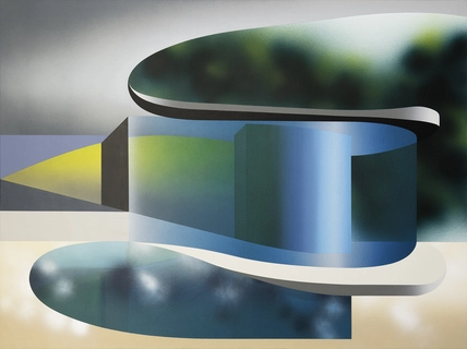 El artista mexicano Hugo Robledo investiga en su obra las fronteras entre figuración y abstracción y sus composiciones pictóricas provienen a menudo de viejas enciclopedias ilustradas y de Internet, de donde extrae imágenes referentes a plantas arquitectónicas, esquemas técnicos, medios de transporte y tecnologías en desuso. El derrumbe del futuro es un proyecto en el que ha trabajado a lo largo de varios años y en el que combina un lenguaje abstracto y geométrico con la reflexión sobre las ideas de arquitectura, espacio, progreso y nostalgia, que ponen de manifiesto las tensiones contradictorias de la época en que vivimos.