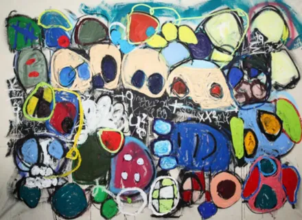 Taher Jaoui es un artista que destaca por su capacidad de ordenación de ciertas formas o patrones, de una forma aparentemente aleatoria, materializándolo en una representación controlada del caos. El acto de pintar y las cualidades plásticas de los materiales empleados se aúnan para capturar un proceso creativo rico e intenso. El artista fusiona expresionismo abstracto, arte primitivo africano, grafitti y cultura pop para crear un lenguaje visual único que desafía las convenciones académicas. Influenciado por Jean-Michel Basquiat, Jean Dubuffet y la estética del neoexpresionismo, sus obras oscilan entre el caos y el orden, integrando gestos gestuales, capas de color vibrante y símbolos matemáticos. En sus series, desde la monocromática "Black and White", que evoca esquemas matemáticos, hasta la neofigurativa "Caartoons", donde formas caricaturescas y colores saturados construyen narrativas visuales, Jaoui conecta emociones y reflexión en un lenguaje que combina la lógica del cálculo con la espontaneidad creativa