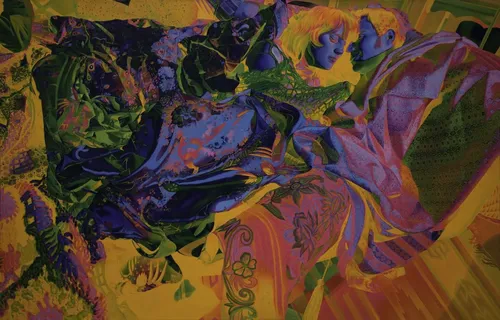Escoto + Carrara (Roberto Escoto y Federico Carrara) trabajan desde hace más de una década en la intersección entre fotografía y pintura para reimaginar el retrato —con especial atención al universo femenino— dentro de espacios domésticos cargados de ornamento. Su investigación cromática desrealiza la escena: invierte paletas, solariza y desplaza el color hasta volverlo umbral entre la vigilia y el sueño. Así, imágenes aparentemente cotidianas se abren a lo inquietante y lo onírico, revelando la ambivalencia del hogar como lugar de intimidad, fantasía y, a veces, tensión. El proceso es un diálogo frontal entre medios: la toma digital convive con la manipulación tecnológica y la traslación meticulosa al óleo, sin jerarquías ni sumisiones. De ese pulso surge una figuración que oscila entre lo clásico y lo contemporáneo; entre la cultura visual pop y una dramaturgia silenciosa que invita a completar los vacíos con la propia experiencia del espectador. En su “cromatonírico” empleo del color —nervio emocional de la obra— el dúo propone un rito de mirada: habitar la “divina cotidianeidad” y sus paradojas, donde lo familiar deviene extrañeza y el retrato, más que identidad, es campo de posibilidades.