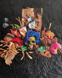 La práctica artística de Pablo Llana se construye desde una mirada crítica y profundamente documentada sobre los excesos del sistema capitalista. Su obra parte de una investigación de campo en torno a la cultura del consumo y el desecho, abordando fenómenos contemporáneos como la obesidad, la globalización o la neo-colonización. Con una ironía aguda y sutil, Llana convierte envoltorios de comida ultraprocesada en materia prima para composiciones visuales que evidencian la contradicción entre atractivo comercial y degradación social. Mediante un proceso meticuloso de recolección y reciclaje, el artista transforma el packaging de productos alimenticios en imágenes que funcionan como espejos de nuestras dinámicas de consumo. Su obra, con un lenguaje directo pero cargado de lecturas múltiples, se despliega en formatos diversos que oscilan entre la instalación, el collage y la escultura. Originario de Tijuana, frontera viva entre México y Estados Unidos, Llana ha convertido su contexto geopolítico en una motivación central de su producción. Su trabajo ha sido expuesto en ciudades como Ciudad de México, Oaxaca, Monterrey, así como en Estados Unidos, Italia y Alemania. Actualmente, su obra forma parte de la colección permanente del Centro Cultural Tijuana (CECUT).