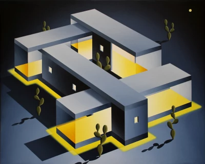 La obra de Illán Argüello se fundamenta en una exploración artística donde convergen la arquitectura, la geometría y el estado onírico. Su universo plástico despliega espacios casi metafísicos: entornos cuidadosamente ordenados, estructuras que remiten a planos arquitectónicos y artefactos verosímiles al límite de lo extraño. Desde el punto de vista técnico, Argüello trabaja con un dominio de la composición basado en ejes geométricos y una paleta que enseña una clara densidad simbólica: cada color, cada forma, cada vacío o figura parece cargado de intención y medida. La arquitectura —tanto en su sentido constructivo como en su dimensión simbólica— actúa como metáfora de la psique, de los silencios estructurales que subyacen a nuestra cotidianidad. En suma, la pintura de Argüello no solo plantea “qué vemos”, sino “cómo nos vemos”: propone que la arquitectura de lo visual refiere a la arquitectura de lo interior. Su obra es una suerte de cartografía del silencio, de la estructura y de la susceptibilidad humana ante el espacio.