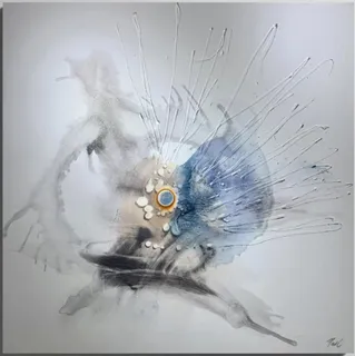 Paulina Cerda es una artista visual chilena cuyo trabajo se sitúa entre la abstracción, la materialidad y la ilusión del espacio tridimensional. Su práctica parte del gesto y la mancha como punto de origen, utilizando la pintura para construir superficies que trascienden el plano y funcionan como espacios perceptivos activos. Uno de los aspectos clave de su obra es el uso de múltiples capas de acrílico para generar profundidad, luz y sombras que sugieren volumen y presencia física sin abandonar la bidimensionalidad. A lo largo de su trayectoria, el gesto pictórico ha evolucionado desde formas suspendidas y compactas hacia fragmentaciones más frágiles, que exploran la memoria del movimiento y la persistencia de lo que se quiebra. Su trabajo se caracteriza por una coherencia sólida entre proceso, forma y contenido, dando lugar a una abstracción que no representa imágenes, sino que construye experiencias visuales que se activan con el tiempo y la mirada del espectador.