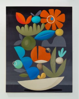 La obra de Rubén Sánchez destaca por una construcción formal rigurosa, donde el equilibrio compositivo no es simplemente una búsqueda estética, sino una estructura conceptual que articula la totalidad de su lenguaje visual. Su aproximación autodidacta ha derivado en una gramática plástica depurada, en la que formas biomórficas, geometrías fragmentadas y paletas cromáticas de alta saturación se integran con precisión matemática en el espacio pictórico. Sánchez domina con solvencia la tensión entre simetría y asimetría, generando un ritmo visual que guía al espectador a través de narrativas implícitas, muchas veces apoyadas en referencias simbólicas o mitológicas de raíz mediterránea. Su calidad técnica reside en la capacidad de resolver obras complejas con una economía de elementos visuales que, lejos de diluir la expresividad, potencian la legibilidad formal y la fuerza comunicativa de sus piezas. Esta solidez compositiva se extiende tanto en formatos murales como en obra sobre lienzo o cerámica, configurando un cuerpo de trabajo coherente, de identidad estilística consolidada y proyección internacional creciente.