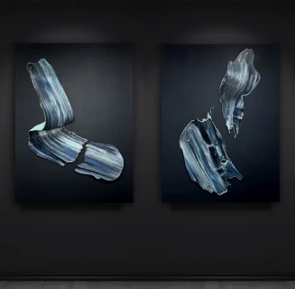 Paulina Cerda es una artista visual chilena cuyo trabajo se sitúa entre la abstracción, la materialidad y la ilusión del espacio tridimensional. Su práctica parte del gesto y la mancha como punto de origen, utilizando la pintura para construir superficies que trascienden el plano y funcionan como espacios perceptivos activos. Uno de los aspectos clave de su obra es el uso de múltiples capas de acrílico para generar profundidad, luz y sombras que sugieren volumen y presencia física sin abandonar la bidimensionalidad. A lo largo de su trayectoria, el gesto pictórico ha evolucionado desde formas suspendidas y compactas hacia fragmentaciones más frágiles, que exploran la memoria del movimiento y la persistencia de lo que se quiebra. Su trabajo se caracteriza por una coherencia sólida entre proceso, forma y contenido, dando lugar a una abstracción que no representa imágenes, sino que construye experiencias visuales que se activan con el tiempo y la mirada del espectador.