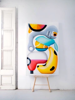 La obra de Rubén Sánchez destaca por una construcción formal rigurosa, donde el equilibrio compositivo no es simplemente una búsqueda estética, sino una estructura conceptual que articula la totalidad de su lenguaje visual. Su aproximación autodidacta ha derivado en una gramática plástica depurada, en la que formas biomórficas, geometrías fragmentadas y paletas cromáticas de alta saturación se integran con precisión matemática en el espacio pictórico. Sánchez domina con solvencia la tensión entre simetría y asimetría, generando un ritmo visual que guía al espectador a través de narrativas implícitas, muchas veces apoyadas en referencias simbólicas o mitológicas de raíz mediterránea. Su calidad técnica reside en la capacidad de resolver obras complejas con una economía de elementos visuales que, lejos de diluir la expresividad, potencian la legibilidad formal y la fuerza comunicativa de sus piezas. Esta solidez compositiva se extiende tanto en formatos murales como en obra sobre lienzo o cerámica, configurando un cuerpo de trabajo coherente, de identidad estilística consolidada y proyección internacional creciente.