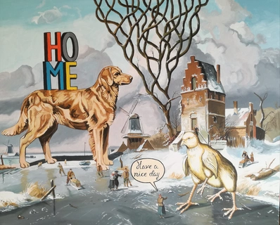 Óscar Seco desarrolla una práctica pictórica crítica que subvierte los relatos históricos, políticos y sociales mediante una iconografía híbrida que combina tradición bélica, estética del cómic e imaginario apocalíptico. Sus composiciones, densas y narrativas, integran referencias históricas y escenarios distópicos con una estructura visual fragmentada y cargada de simbolismo. Formalmente, conjuga dibujo riguroso con elementos paródicos y grotescos, generando una tensión entre artificio y contenido. Su manejo cromático alterna entre paletas saturadas y blancos y negros, siempre en función del discurso visual. Conceptualmente, su obra opera desde el revisionismo simbólico, cuestionando las mitologías del poder, la memoria colectiva y la violencia estructural mediante ironía, apropiación y anacronismo.