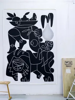 La obra de Rubén Sánchez destaca por una construcción formal rigurosa, donde el equilibrio compositivo no es simplemente una búsqueda estética, sino una estructura conceptual que articula la totalidad de su lenguaje visual. Su aproximación autodidacta ha derivado en una gramática plástica depurada, en la que formas biomórficas, geometrías fragmentadas y paletas cromáticas de alta saturación se integran con precisión matemática en el espacio pictórico. Sánchez domina con solvencia la tensión entre simetría y asimetría, generando un ritmo visual que guía al espectador a través de narrativas implícitas, muchas veces apoyadas en referencias simbólicas o mitológicas de raíz mediterránea. Su calidad técnica reside en la capacidad de resolver obras complejas con una economía de elementos visuales que, lejos de diluir la expresividad, potencian la legibilidad formal y la fuerza comunicativa de sus piezas. Esta solidez compositiva se extiende tanto en formatos murales como en obra sobre lienzo o cerámica, configurando un cuerpo de trabajo coherente, de identidad estilística consolidada y proyección internacional creciente.