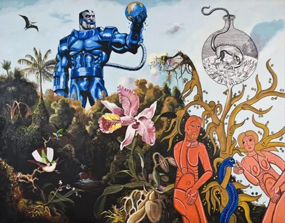 Óscar Seco desarrolla una práctica pictórica crítica que subvierte los relatos históricos, políticos y sociales mediante una iconografía híbrida que combina tradición bélica, estética del cómic e imaginario apocalíptico. Sus composiciones, densas y narrativas, integran referencias históricas y escenarios distópicos con una estructura visual fragmentada y cargada de simbolismo. Formalmente, conjuga dibujo riguroso con elementos paródicos y grotescos, generando una tensión entre artificio y contenido. Su manejo cromático alterna entre paletas saturadas y blancos y negros, siempre en función del discurso visual. Conceptualmente, su obra opera desde el revisionismo simbólico, cuestionando las mitologías del poder, la memoria colectiva y la violencia estructural mediante ironía, apropiación y anacronismo.