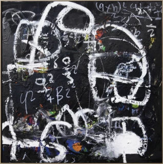 Taher Jaoui es un artista que destaca por su capacidad de ordenación de ciertas formas o patrones, de una forma aparentemente aleatoria, materializándolo en una representación controlada del caos. El acto de pintar y las cualidades plásticas de los materiales empleados se aúnan para capturar un proceso creativo rico e intenso. El artista fusiona expresionismo abstracto, arte primitivo africano, grafitti y cultura pop para crear un lenguaje visual único que desafía las convenciones académicas. Influenciado por Jean-Michel Basquiat, Jean Dubuffet y la estética del neoexpresionismo, sus obras oscilan entre el caos y el orden, integrando gestos gestuales, capas de color vibrante y símbolos matemáticos. En sus series, desde la monocromática "Black and White", que evoca esquemas matemáticos, hasta la neofigurativa "Caartoons", donde formas caricaturescas y colores saturados construyen narrativas visuales, Jaoui conecta emociones y reflexión en un lenguaje que combina la lógica del cálculo con la espontaneidad creativa
