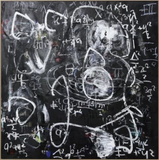 Taher Jaoui es un artista que destaca por su capacidad de ordenación de ciertas formas o patrones, de una forma aparentemente aleatoria, materializándolo en una representación controlada del caos. El acto de pintar y las cualidades plásticas de los materiales empleados se aúnan para capturar un proceso creativo rico e intenso. El artista fusiona expresionismo abstracto, arte primitivo africano, grafitti y cultura pop para crear un lenguaje visual único que desafía las convenciones académicas. Influenciado por Jean-Michel Basquiat, Jean Dubuffet y la estética del neoexpresionismo, sus obras oscilan entre el caos y el orden, integrando gestos gestuales, capas de color vibrante y símbolos matemáticos. En sus series, desde la monocromática "Black and White", que evoca esquemas matemáticos, hasta la neofigurativa "Caartoons", donde formas caricaturescas y colores saturados construyen narrativas visuales, Jaoui conecta emociones y reflexión en un lenguaje que combina la lógica del cálculo con la espontaneidad creativa