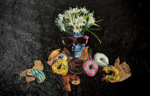 La práctica artística de Pablo Llana se construye desde una mirada crítica y profundamente documentada sobre los excesos del sistema capitalista. Su obra parte de una investigación de campo en torno a la cultura del consumo y el desecho, abordando fenómenos contemporáneos como la obesidad, la globalización o la neo-colonización. Con una ironía aguda y sutil, Llana convierte envoltorios de comida ultraprocesada en materia prima para composiciones visuales que evidencian la contradicción entre atractivo comercial y degradación social. Mediante un proceso meticuloso de recolección y reciclaje, el artista transforma el packaging de productos alimenticios en imágenes que funcionan como espejos de nuestras dinámicas de consumo. Su obra, con un lenguaje directo pero cargado de lecturas múltiples, se despliega en formatos diversos que oscilan entre la instalación, el collage y la escultura. Originario de Tijuana, frontera viva entre México y Estados Unidos, Llana ha convertido su contexto geopolítico en una motivación central de su producción. Su trabajo ha sido expuesto en ciudades como Ciudad de México, Oaxaca, Monterrey, así como en Estados Unidos, Italia y Alemania. Actualmente, su obra forma parte de la colección permanente del Centro Cultural Tijuana (CECUT).