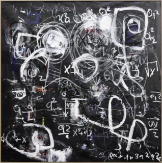 Taher Jaoui es un artista que destaca por su capacidad de ordenación de ciertas formas o patrones, de una forma aparentemente aleatoria, materializándolo en una representación controlada del caos. El acto de pintar y las cualidades plásticas de los materiales empleados se aúnan para capturar un proceso creativo rico e intenso. El artista fusiona expresionismo abstracto, arte primitivo africano, grafitti y cultura pop para crear un lenguaje visual único que desafía las convenciones académicas. Influenciado por Jean-Michel Basquiat, Jean Dubuffet y la estética del neoexpresionismo, sus obras oscilan entre el caos y el orden, integrando gestos gestuales, capas de color vibrante y símbolos matemáticos. En sus series, desde la monocromática "Black and White", que evoca esquemas matemáticos, hasta la neofigurativa "Caartoons", donde formas caricaturescas y colores saturados construyen narrativas visuales, Jaoui conecta emociones y reflexión en un lenguaje que combina la lógica del cálculo con la espontaneidad creativa