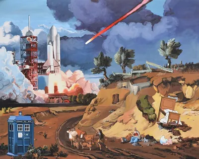 Óscar Seco desarrolla una práctica pictórica crítica que subvierte los relatos históricos, políticos y sociales mediante una iconografía híbrida que combina tradición bélica, estética del cómic e imaginario apocalíptico. Sus composiciones, densas y narrativas, integran referencias históricas y escenarios distópicos con una estructura visual fragmentada y cargada de simbolismo. Formalmente, conjuga dibujo riguroso con elementos paródicos y grotescos, generando una tensión entre artificio y contenido. Su manejo cromático alterna entre paletas saturadas y blancos y negros, siempre en función del discurso visual. Conceptualmente, su obra opera desde el revisionismo simbólico, cuestionando las mitologías del poder, la memoria colectiva y la violencia estructural mediante ironía, apropiación y anacronismo.