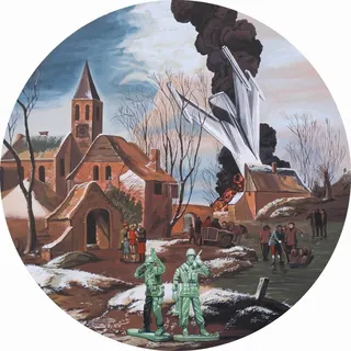 Óscar Seco desarrolla una práctica pictórica crítica que subvierte los relatos históricos, políticos y sociales mediante una iconografía híbrida que combina tradición bélica, estética del cómic e imaginario apocalíptico. Sus composiciones, densas y narrativas, integran referencias históricas y escenarios distópicos con una estructura visual fragmentada y cargada de simbolismo. Formalmente, conjuga dibujo riguroso con elementos paródicos y grotescos, generando una tensión entre artificio y contenido. Su manejo cromático alterna entre paletas saturadas y blancos y negros, siempre en función del discurso visual. Conceptualmente, su obra opera desde el revisionismo simbólico, cuestionando las mitologías del poder, la memoria colectiva y la violencia estructural mediante ironía, apropiación y anacronismo.