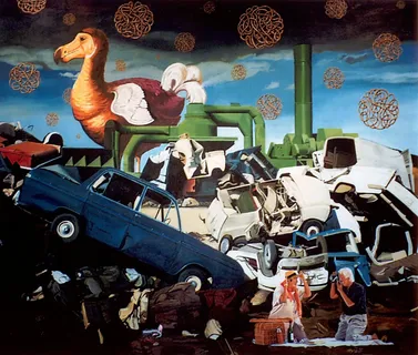 Óscar Seco desarrolla una práctica pictórica crítica que subvierte los relatos históricos, políticos y sociales mediante una iconografía híbrida que combina tradición bélica, estética del cómic e imaginario apocalíptico. Sus composiciones, densas y narrativas, integran referencias históricas y escenarios distópicos con una estructura visual fragmentada y cargada de simbolismo. Formalmente, conjuga dibujo riguroso con elementos paródicos y grotescos, generando una tensión entre artificio y contenido. Su manejo cromático alterna entre paletas saturadas y blancos y negros, siempre en función del discurso visual. Conceptualmente, su obra opera desde el revisionismo simbólico, cuestionando las mitologías del poder, la memoria colectiva y la violencia estructural mediante ironía, apropiación y anacronismo.