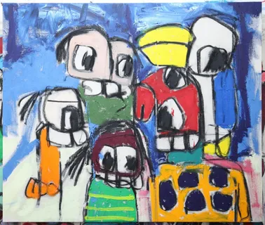 Taher Jaoui es un artista que destaca por su capacidad de ordenación de ciertas formas o patrones, de una forma aparentemente aleatoria, materializándolo en una representación controlada del caos. El acto de pintar y las cualidades plásticas de los materiales empleados se aúnan para capturar un proceso creativo rico e intenso. El artista fusiona expresionismo abstracto, arte primitivo africano, grafitti y cultura pop para crear un lenguaje visual único que desafía las convenciones académicas. Influenciado por Jean-Michel Basquiat, Jean Dubuffet y la estética del neoexpresionismo, sus obras oscilan entre el caos y el orden, integrando gestos gestuales, capas de color vibrante y símbolos matemáticos. En sus series, desde la monocromática "Black and White", que evoca esquemas matemáticos, hasta la neofigurativa "Caartoons", donde formas caricaturescas y colores saturados construyen narrativas visuales, Jaoui conecta emociones y reflexión en un lenguaje que combina la lógica del cálculo con la espontaneidad creativa