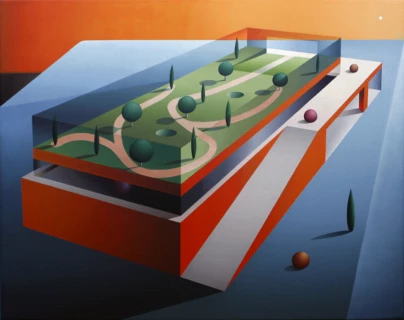 La obra de Illán Argüello se fundamenta en una exploración artística donde convergen la arquitectura, la geometría y el estado onírico. Su universo plástico despliega espacios casi metafísicos: entornos cuidadosamente ordenados, estructuras que remiten a planos arquitectónicos y artefactos verosímiles al límite de lo extraño. Desde el punto de vista técnico, Argüello trabaja con un dominio de la composición basado en ejes geométricos y una paleta que enseña una clara densidad simbólica: cada color, cada forma, cada vacío o figura parece cargado de intención y medida. La arquitectura —tanto en su sentido constructivo como en su dimensión simbólica— actúa como metáfora de la psique, de los silencios estructurales que subyacen a nuestra cotidianidad. En suma, la pintura de Argüello no solo plantea “qué vemos”, sino “cómo nos vemos”: propone que la arquitectura de lo visual refiere a la arquitectura de lo interior. Su obra es una suerte de cartografía del silencio, de la estructura y de la susceptibilidad humana ante el espacio.