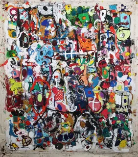 Taher Jaoui es un artista que destaca por su capacidad de ordenación de ciertas formas o patrones, de una forma aparentemente aleatoria, materializándolo en una representación controlada del caos. El acto de pintar y las cualidades plásticas de los materiales empleados se aúnan para capturar un proceso creativo rico e intenso. El artista fusiona expresionismo abstracto, arte primitivo africano, grafitti y cultura pop para crear un lenguaje visual único que desafía las convenciones académicas. Influenciado por Jean-Michel Basquiat, Jean Dubuffet y la estética del neoexpresionismo, sus obras oscilan entre el caos y el orden, integrando gestos gestuales, capas de color vibrante y símbolos matemáticos. En sus series, desde la monocromática "Black and White", que evoca esquemas matemáticos, hasta la neofigurativa "Caartoons", donde formas caricaturescas y colores saturados construyen narrativas visuales, Jaoui conecta emociones y reflexión en un lenguaje que combina la lógica del cálculo con la espontaneidad creativa