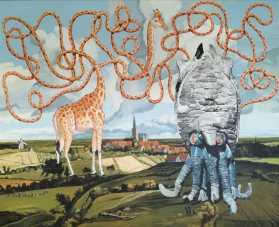 Óscar Seco desarrolla una práctica pictórica crítica que subvierte los relatos históricos, políticos y sociales mediante una iconografía híbrida que combina tradición bélica, estética del cómic e imaginario apocalíptico. Sus composiciones, densas y narrativas, integran referencias históricas y escenarios distópicos con una estructura visual fragmentada y cargada de simbolismo. Formalmente, conjuga dibujo riguroso con elementos paródicos y grotescos, generando una tensión entre artificio y contenido. Su manejo cromático alterna entre paletas saturadas y blancos y negros, siempre en función del discurso visual. Conceptualmente, su obra opera desde el revisionismo simbólico, cuestionando las mitologías del poder, la memoria colectiva y la violencia estructural mediante ironía, apropiación y anacronismo.