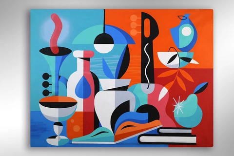 La obra de Rubén Sánchez destaca por una construcción formal rigurosa, donde el equilibrio compositivo no es simplemente una búsqueda estética, sino una estructura conceptual que articula la totalidad de su lenguaje visual. Su aproximación autodidacta ha derivado en una gramática plástica depurada, en la que formas biomórficas, geometrías fragmentadas y paletas cromáticas de alta saturación se integran con precisión matemática en el espacio pictórico. Sánchez domina con solvencia la tensión entre simetría y asimetría, generando un ritmo visual que guía al espectador a través de narrativas implícitas, muchas veces apoyadas en referencias simbólicas o mitológicas de raíz mediterránea. Su calidad técnica reside en la capacidad de resolver obras complejas con una economía de elementos visuales que, lejos de diluir la expresividad, potencian la legibilidad formal y la fuerza comunicativa de sus piezas. Esta solidez compositiva se extiende tanto en formatos murales como en obra sobre lienzo o cerámica, configurando un cuerpo de trabajo coherente, de identidad estilística consolidada y proyección internacional creciente.