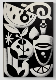 La obra de Rubén Sánchez destaca por una construcción formal rigurosa, donde el equilibrio compositivo no es simplemente una búsqueda estética, sino una estructura conceptual que articula la totalidad de su lenguaje visual. Su aproximación autodidacta ha derivado en una gramática plástica depurada, en la que formas biomórficas, geometrías fragmentadas y paletas cromáticas de alta saturación se integran con precisión matemática en el espacio pictórico. Sánchez domina con solvencia la tensión entre simetría y asimetría, generando un ritmo visual que guía al espectador a través de narrativas implícitas, muchas veces apoyadas en referencias simbólicas o mitológicas de raíz mediterránea. Su calidad técnica reside en la capacidad de resolver obras complejas con una economía de elementos visuales que, lejos de diluir la expresividad, potencian la legibilidad formal y la fuerza comunicativa de sus piezas. Esta solidez compositiva se extiende tanto en formatos murales como en obra sobre lienzo o cerámica, configurando un cuerpo de trabajo coherente, de identidad estilística consolidada y proyección internacional creciente.