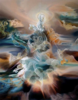 Había una mujer, en lo alto del cielo, en el centro de las nubes, mirándome. Detrás de ella había muchas otras, más distantes pero aún relevantes. Estaba radiante, resplandeciente, y me sentí tan en paz. Como en casa. Insegura de su significado, pedí consejo a una amiga vidente. Me sugirió que había curado algo en mi línea de sangre, en particular a las mujeres de mi línea de sangre.