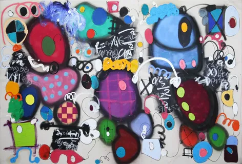 Taher Jaoui est un artiste qui se distingue par sa capacité à ordonner certaines formes ou motifs, d'une manière apparemment aléatoire, les matérialisant en une représentation contrôlée du chaos. L'acte de peindre et les qualités plastiques des matériaux utilisés s'unissent pour capturer un processus créatif riche et intense. L'artiste fusionne l'expressionnisme abstrait, l'art primitif africain, le "graffiti" et la culture pop pour créer un langage visuel unique qui défie les conventions académiques. Influencé par Jean-Michel Basquiat, Jean Dubuffet et l'ésthétique du néo-expressionnisme, ses œuvres oscillent entre le chaos et l'ordre, intégrant des gestes gestuels, des couches de couleur vibrante et des symboles mathématiques. Dans ses séries, de la série monochrome "Black and White", qui évoque des schémas mathématiques, à la série néo-figurative "Caartoons", où des formes caricaturales et des couleurs saturées construisent des récits visuels, Jaoui connecte émotions et réflexion dans un langage qui combine la logique du calcul avec la spontanéité créative